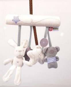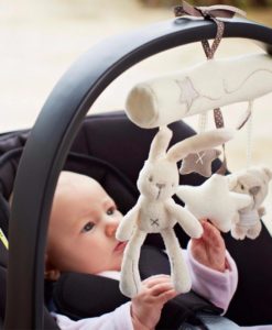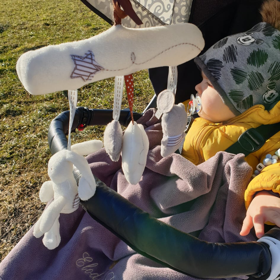 Prikupna plišasta glasbena obešanka, ki bo vašemu malčku krajšala čas in mu hkrati omogočila odkrivanje novih zvokov in oblik. Priročna, saj jo lahko privežete na lupinico, voziček, zibko ali avto sedež, tako da bo najljubša igrača vedno pri roki.