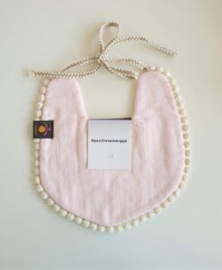 Otroški slinček iz Vintage Inergija kolekcije. Prefinjen izgled z obojestranskim dizajnom. Na eni strani se v vsej svoji lepoti kažejo čudovite angleške vrtnice za prave male princeske, na drugi pa je pastelno roza za lažje kombiniranje k različnim oblačilom. Pritrdimo ga s prepleteno vrvico, ki jo zavežemo na poljubni dolžini, zato je primeren za dojenčke 3 do 24 mesecev. Slinček odlično vpija vlago in ohranja dojenčkova oblačila suha in čista, obenem pa je zračen in lahek.